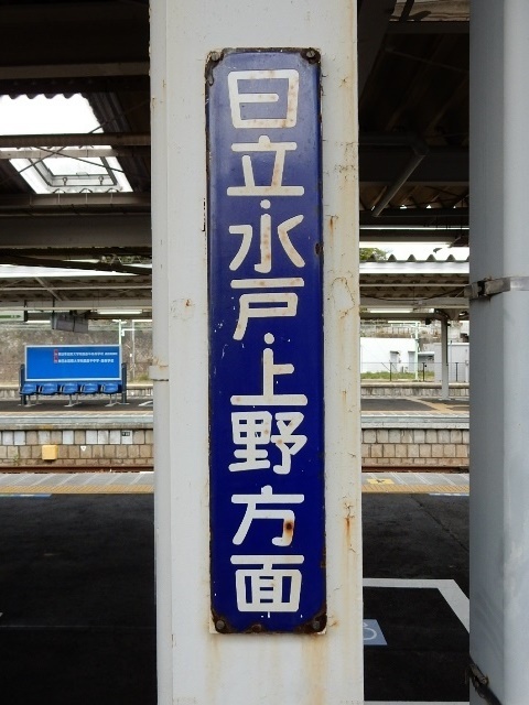 そして上りホームの柱に、現代の雰囲気に似合わない古めかしい