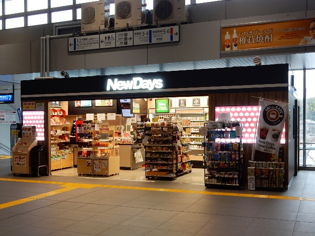 改札内にあるコンビニ(New Days)が開いてますので、ココで今日の