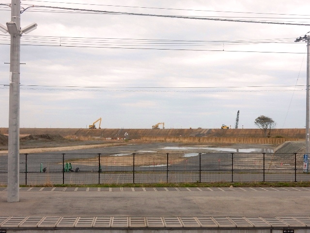 駅から海岸の方向を見ると、今でも護岸工事の続きらしき作業が