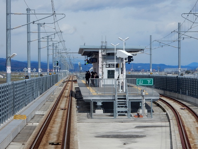 2016年に開通した新しい高架線が見えてきました。山下駅はそのまま