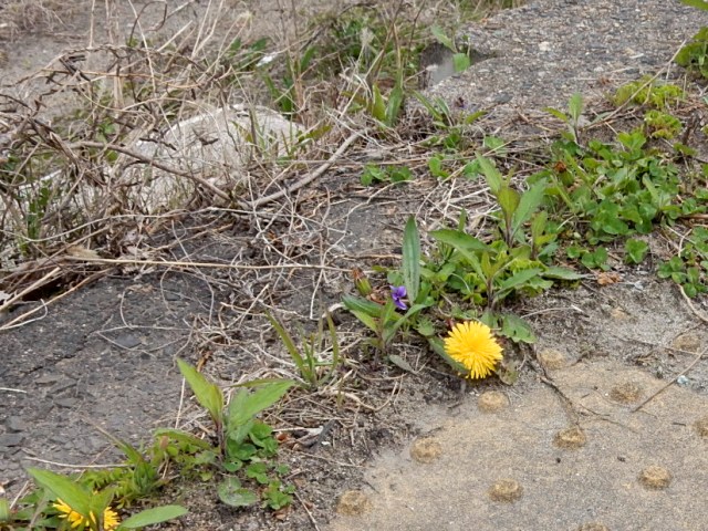 …荒れ果てたホームのコンクリートの隙間からタンポポが咲いてる
