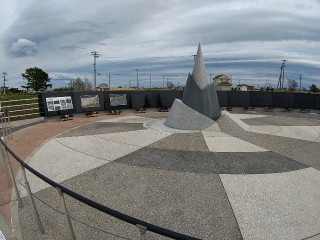 跡地で海岸線から約1.2kmの地点なんですが、東日本大震災では