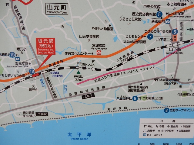 震災前の坂元駅に関しては記載はありませんが、現在地から海岸の