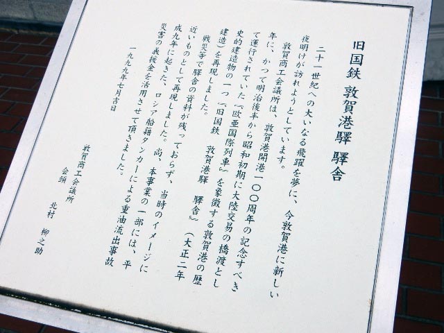 「旧国鉄 敦賀港駅 駅舎」…とありますが、現物ではなくレプリカの
