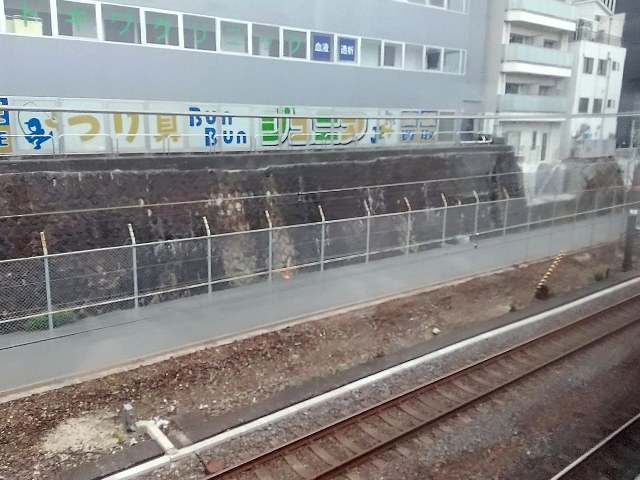 線路跡の一部に現在は東横インのホテルが乗っかってる状態です。