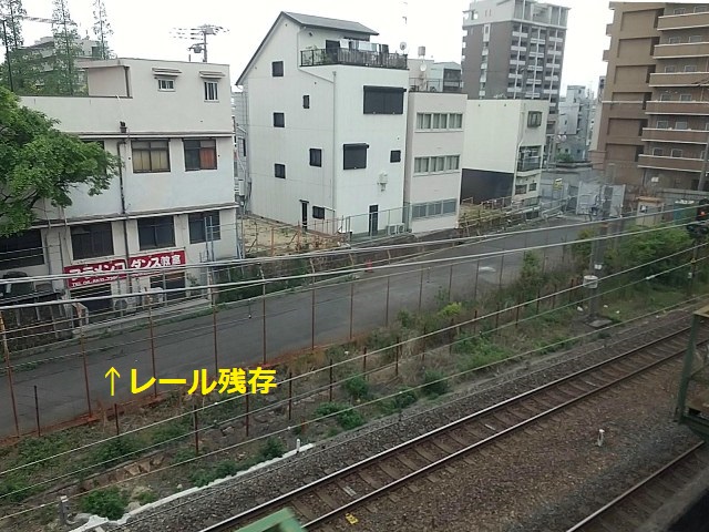 微妙な幅の空き地が確認出来ます。コレが天王寺支線の跡ですわ。