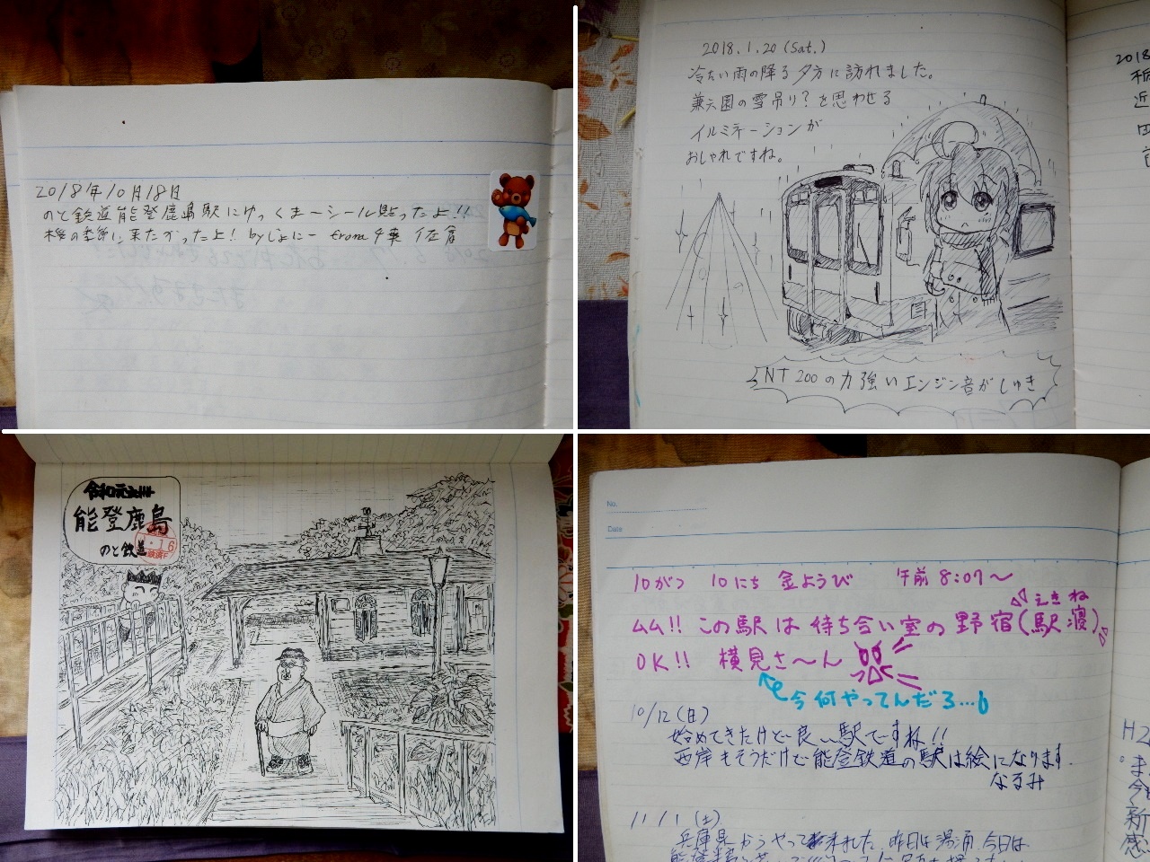 駅ノートの中身は、絵師さんの新規作品はケンさんの1点、ゆっくまー