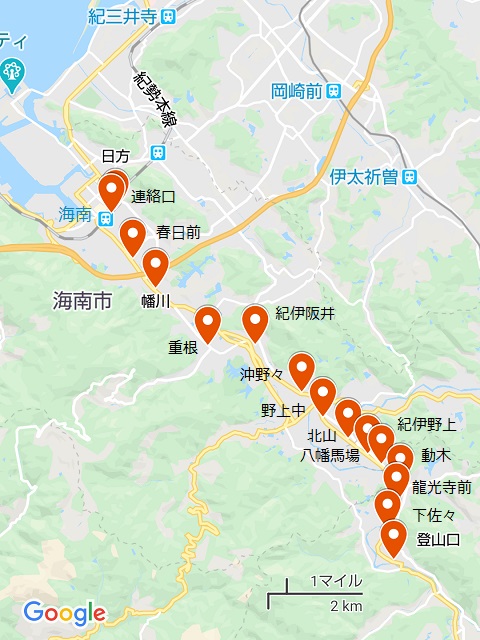 海南駅近くの日方駅を起点に、ほぼ真東に