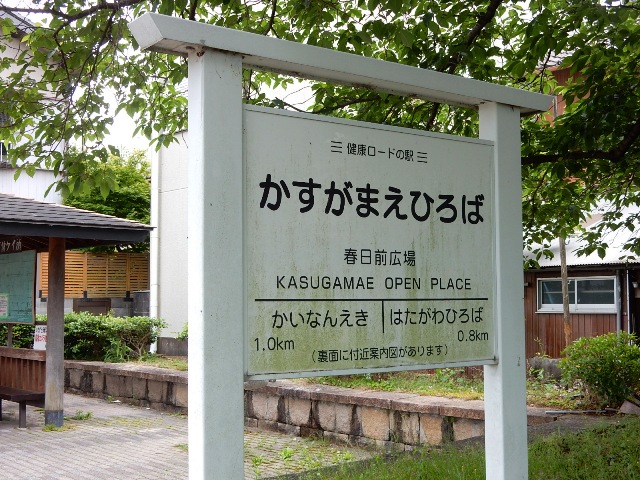 起点から1kmの地点にある「春日前広場」と言う地点に到着しました。