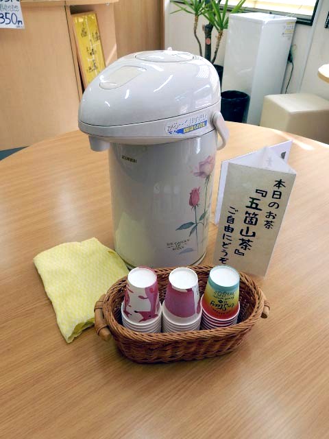 観光協会なので椅子とテーブルがあり、セルフサービスですが御当地