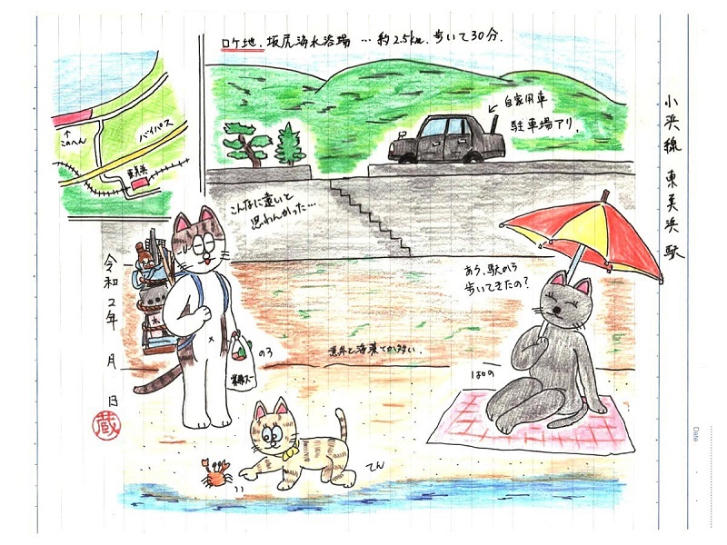 私もアニメ作品の事は分からないので、先程の坂尻海水浴場です。