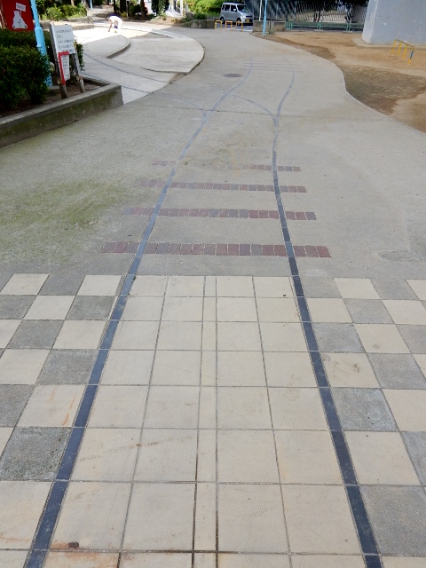 そして流石に線路は残ってませんが、右のように舗道にタイルで線路
