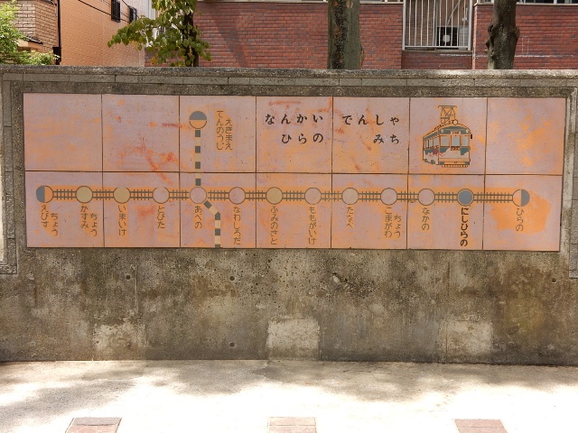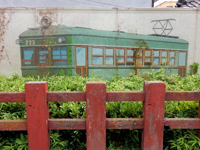同じ敷地内に南海軌道線(阪堺電車)の車両をデザインしたモザイク