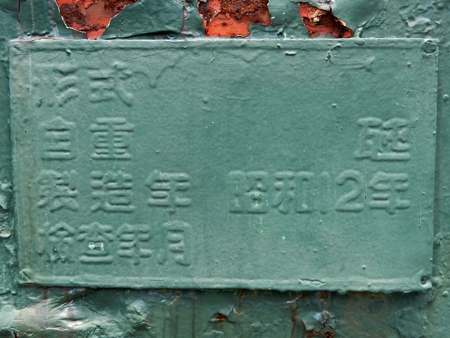 銘板には何故か形式と重量などが抜けてますが、製造は昭和12年。