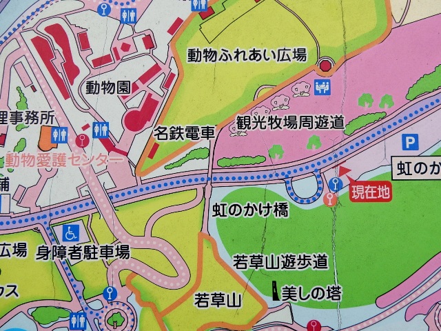 車を駐車場へ入れに行くと、園内の案内図がありました。溜池には