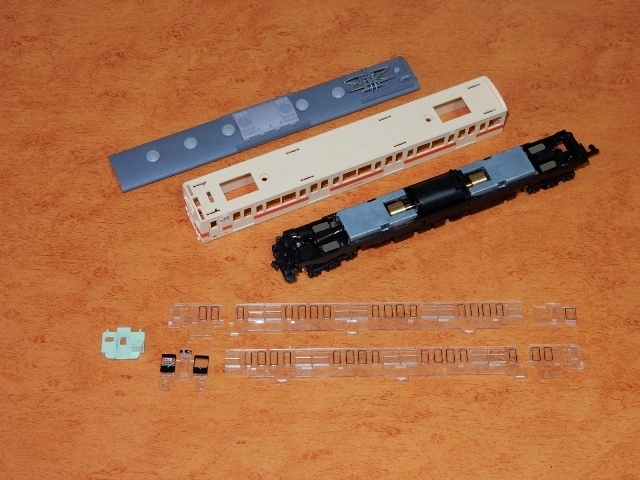 前・左・右の窓ガラスと、シャーシに相当する台枠部分です。
