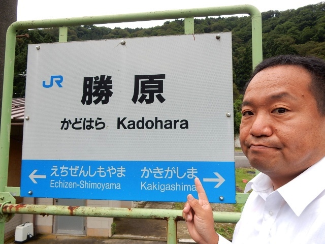 目的地の2箇所目となる勝原駅に到着しましたクラ駅長です。