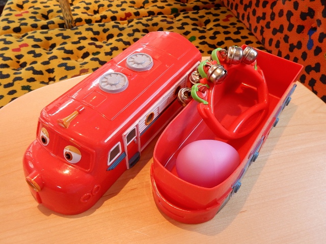 各座席に置いてあった、キャラクターを模した容器の中には、鈴と
