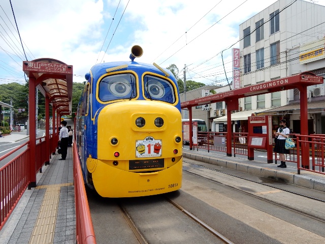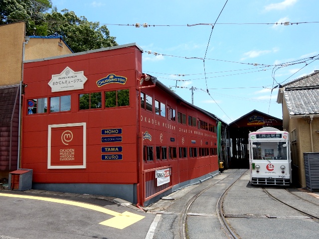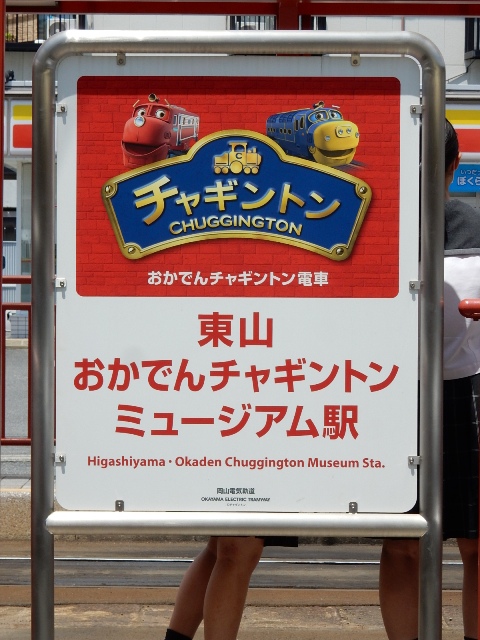 本来の駅名は東山ですが「おかでんチャギントンミュージアム駅」