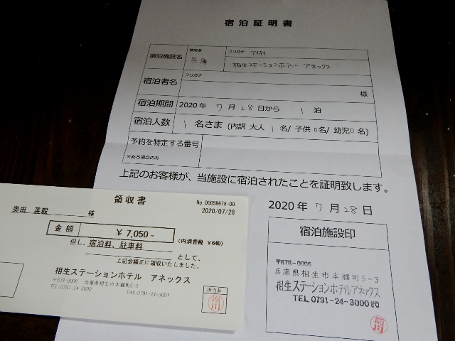 に必要だと言う領収書と宿泊証明書を貰ってきましたクラ駅長です。