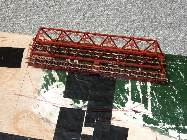 鉄橋が来る箇所を長方形に切って、余った板などで段差を作りました。