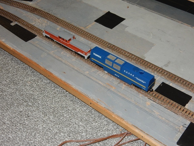 では試運転。…事前に線路はヤスリ掛けしてありますが、作業の