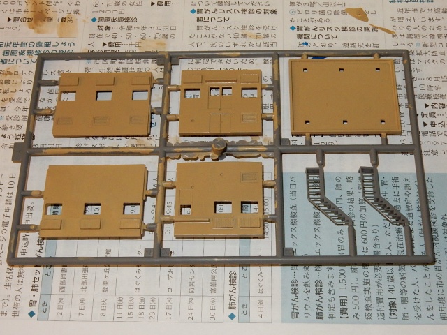 続いてが詰所です。コレは部品が全部灰色一辺倒なので、適当に