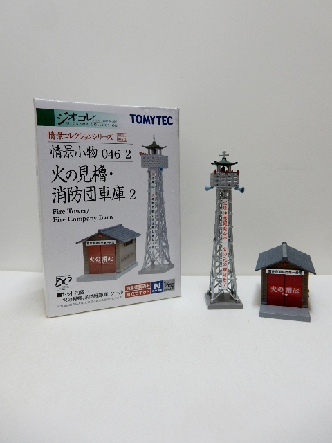 そして細かい物として、ジオコレの火の見櫓と消防団倉庫のセットを