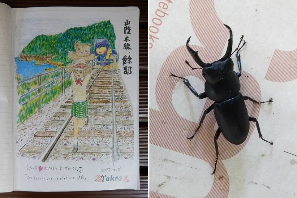 そして駅ノートを入れてあるカゴに、小さ目のクワガタ虫が居るの。