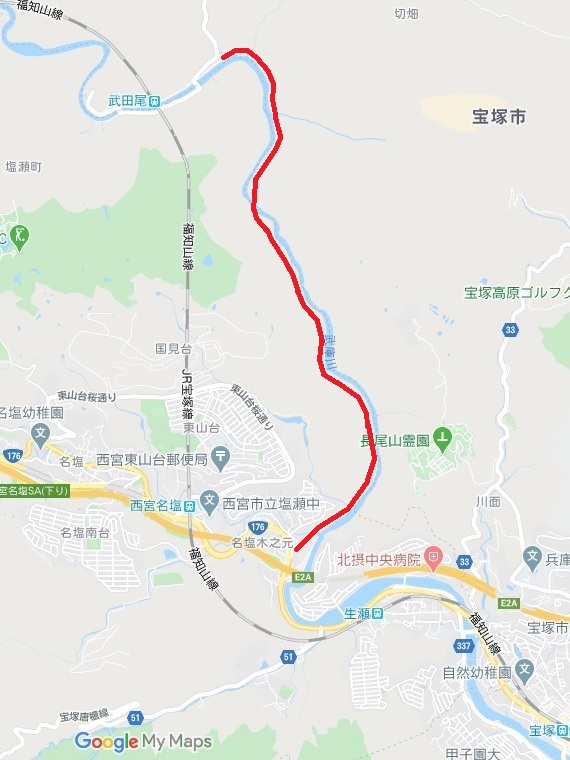 武庫川に沿ってカーブを繰り返しつつ走ってた事になりますね。