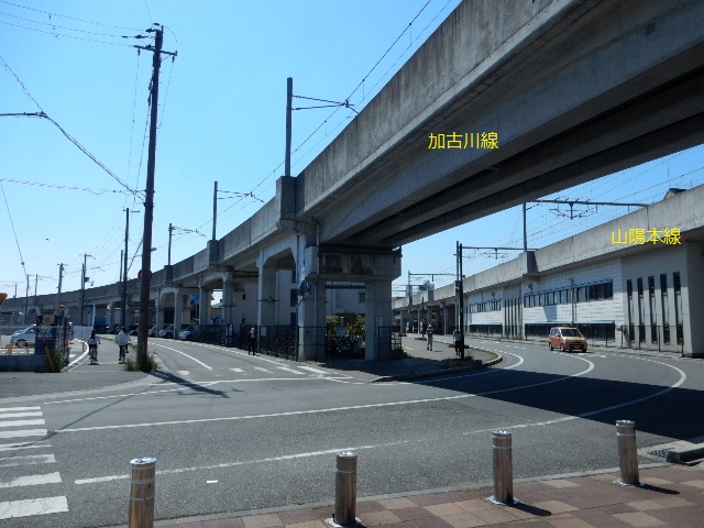 を出た高砂線は少し先で加古川線と分かれ、築堤で山陽本線を跨いで