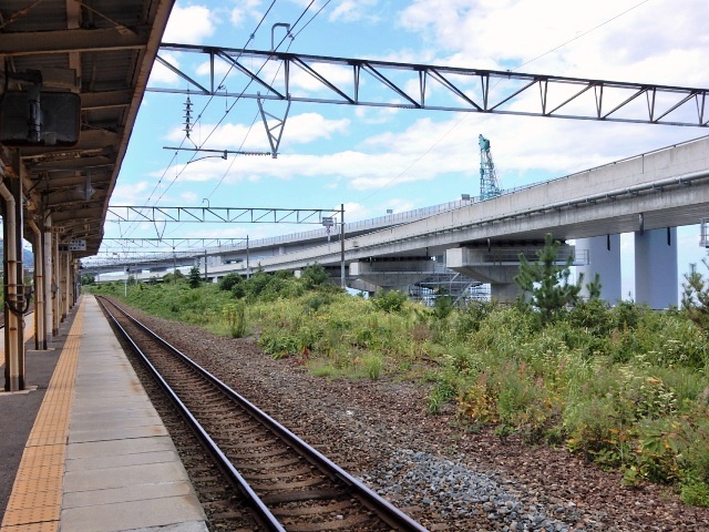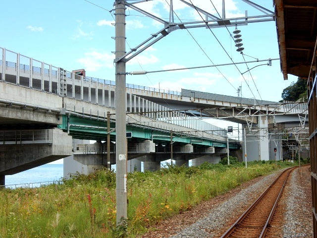 筈なんですが、駅と海岸の間には高架道路が2本も横たわり、海は