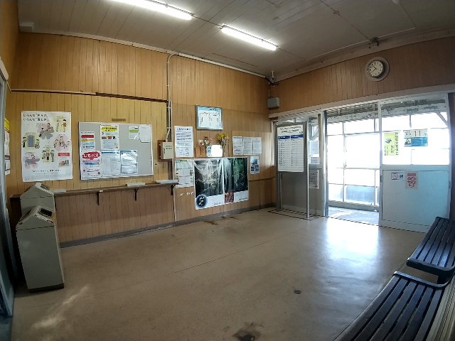同駅も元は有人駅だったと思われますが、窓口の類が板で塞がれた