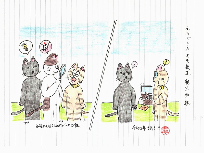 「親不知」と歯の「親知らず」でボケてあります。…猫も人間と同じような