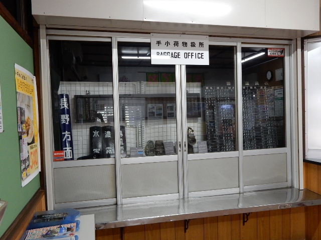 元の手荷物窓口に国鉄時代の物と思われる鉄道用品が展示されて