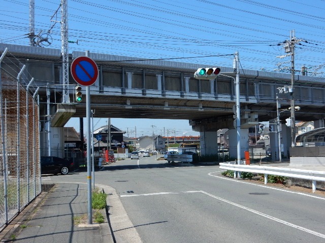 まず手前が山陽新幹線です。当然にこっちの方が新しいので高架になる