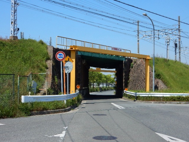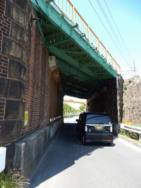 さて国鉄高砂線です。鶴林寺を過ぎて少し行くと、2本の高架橋の下を