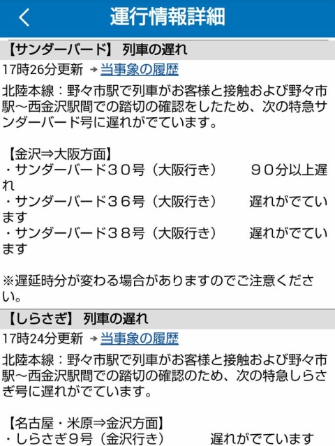 野々市付近(って金沢からすぐ近く)で人身事故があったらしく、私が