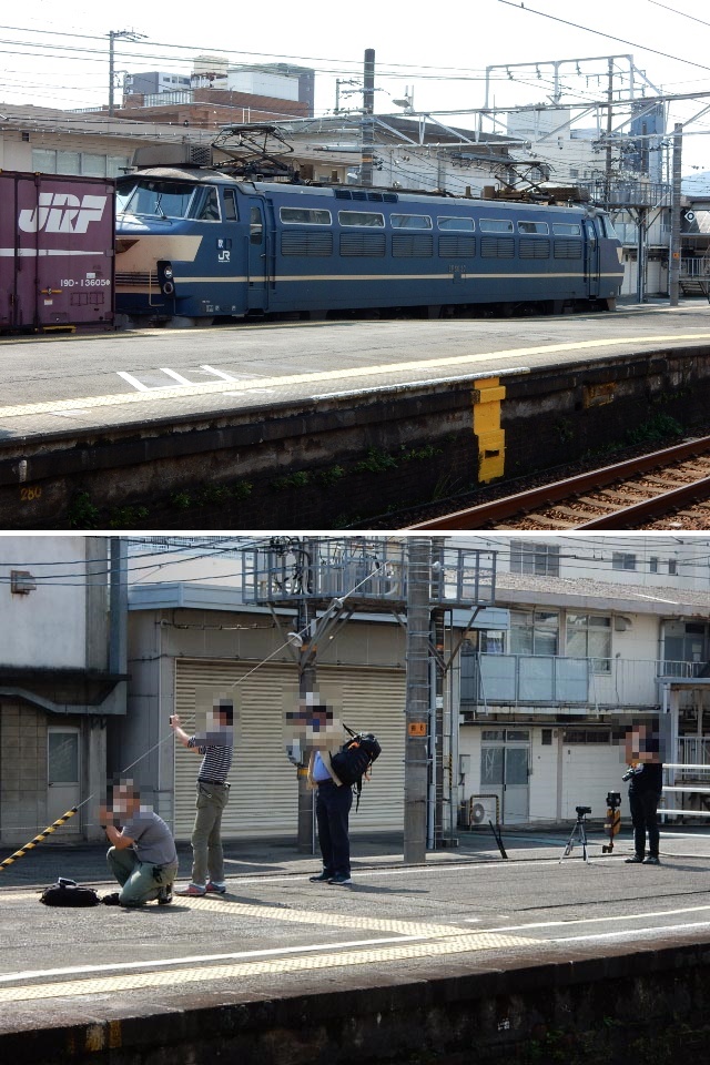 何だか微妙に撮り鉄さんが多いなと思ったら、左上の貨物列車を