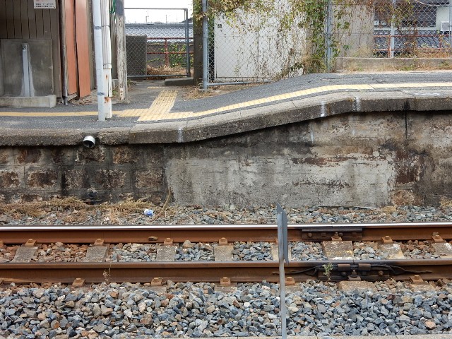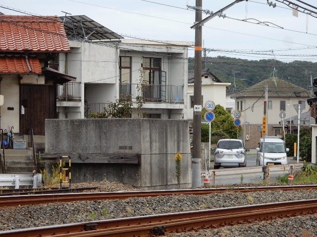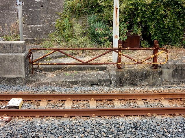 駅舎に近い端っこに、踏切の跡らしき物があったんですよ。
