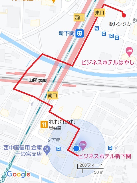 駅レンタカーのある東口のロータリーへ行くのに矢鱈と手間を食い