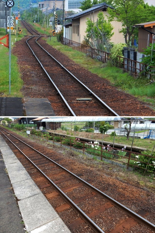 事が容易に分かる線形です。…反対側のホームは畑になってますが、
