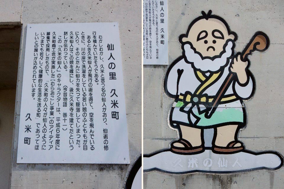 駅に隣接するトイレに、久米仙人の昔話が記されていました。