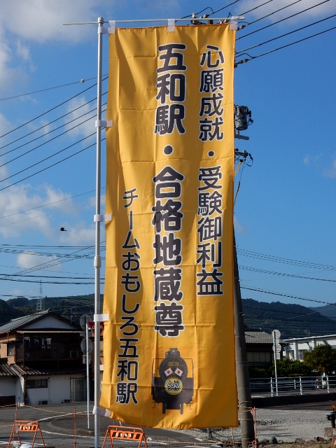 駅の周辺には「チームおもしろ五和駅」と言う団体?の幟が何本も