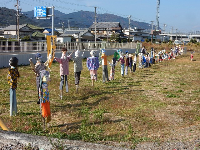 そして線路際にカカシの一団が。…コレは前回には無かった筈です