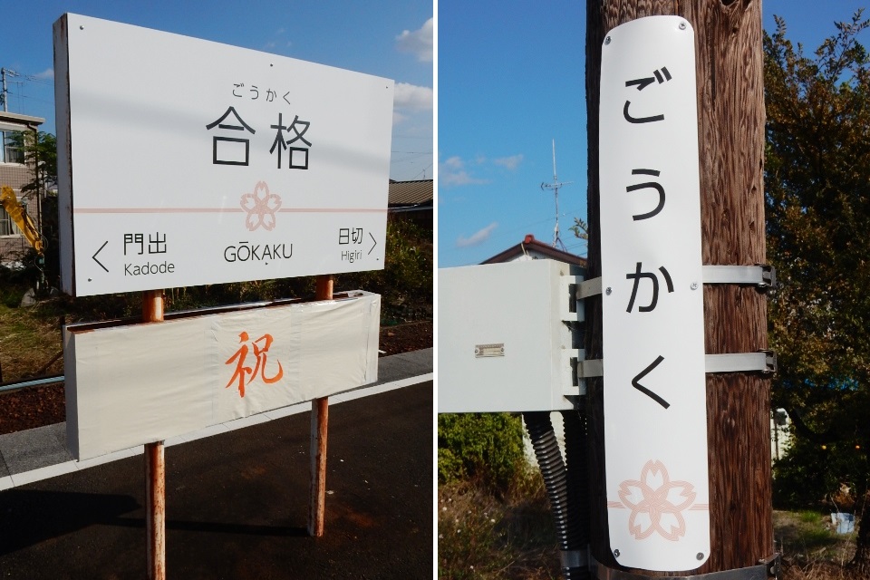 に駅名が「合格駅」に変わってしまいました。
