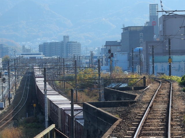 広島駅の三原寄り…機関区や車両留置線のエリアを抜けて行きます。