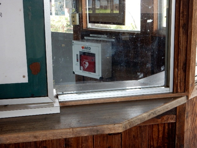 …当日の午前中に行った美作千代駅には、昨今の事情からかAED
