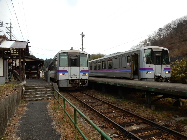 運良く上下双方向の列車が交換するタイミングに当たりました。