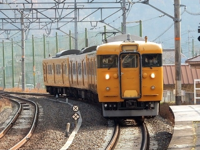 伯備線の普通電車は相変わらず末期色の115系がメインですが、よく